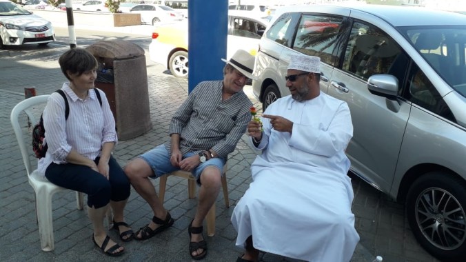 Så går en ny dag mot slutten her i Muscat. En lang og til tider slitsom dag, men en ny dag full av inntrykk og opplevelser. Først må jeg nesten få publisere bildet under her, som ble tatt søndag, og som jeg fikk tilsendt fra den hyggelige mannen til høyre her i dag.