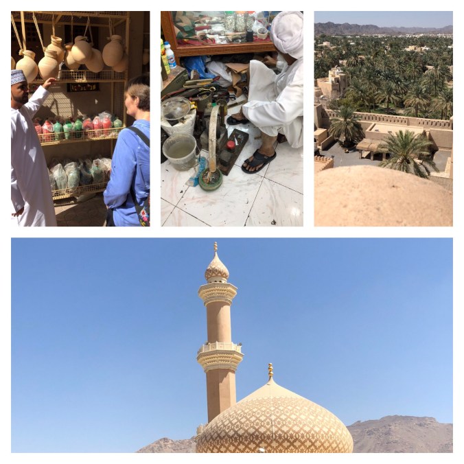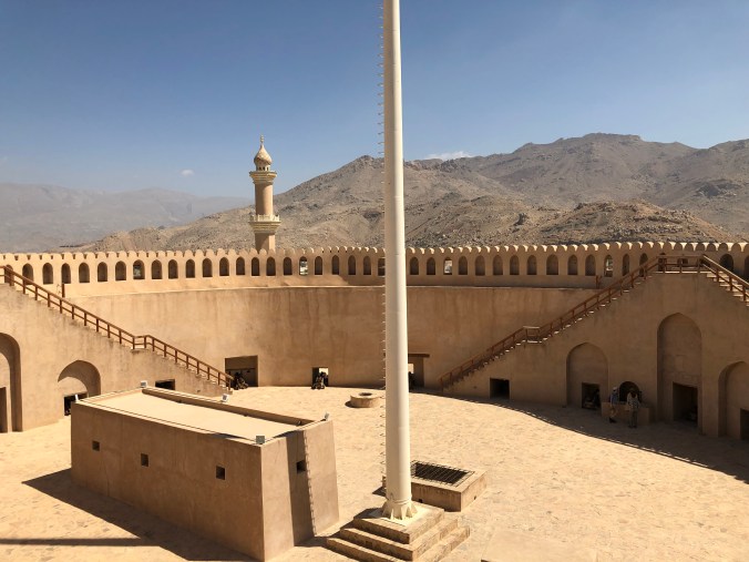Første stopp, ca 160km fra Muscat, var Nizwa, landets gamle hovedstad med massevis av interessante steder å besøke. Mesteparten av tiden her gikk med på å undersøke Nizwa Fort, byens mest berømte severdighet. Innenfor portene i fortet er også Nizwa Souk (marked) som starter kl 05.30 hver dag med geiteauksjon. Så tidlig var vi ikke opp så vi fikk med oss det, men det hadde vært moro å fått overvære.